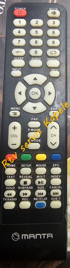 Desni daljinski upravljalec za Manta tv, nadomešča levi daljinec Manta. Je za naslednje modele LCD televizorjev, LED tv sprejemnikov in tv aparatov. Z vstavitvijo baterij je daljinec pripravljen za delovanje. Daljinec ne potrebuje nastavljanja.